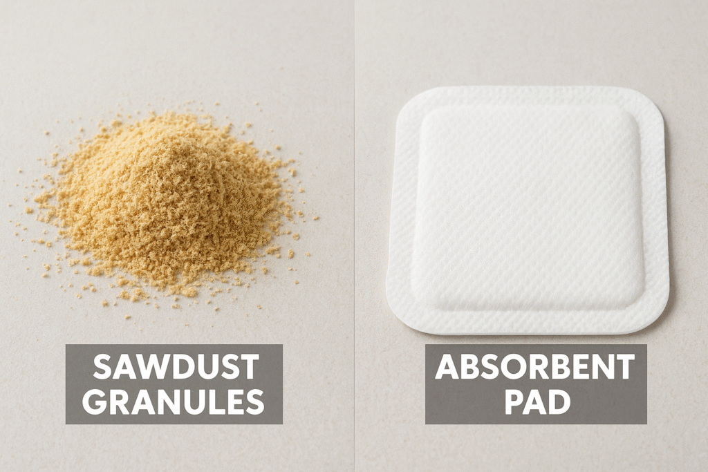 Sawdust is a natural absorbent made from timber, whereas other granules may be clay, silica, or polymer-based. Sawdust stands out because it’s lightweight, safe, and sustainable.